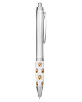 • Retractable curvy plastic barrel ballpoint pen with stock art grip featuring a House Emoticon